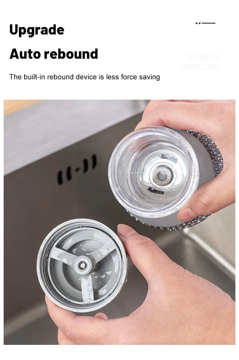 Cette brosse 2-en-1 cache un petit secret : un réservoir intégré qui libère le savon à chaque pression 🧴